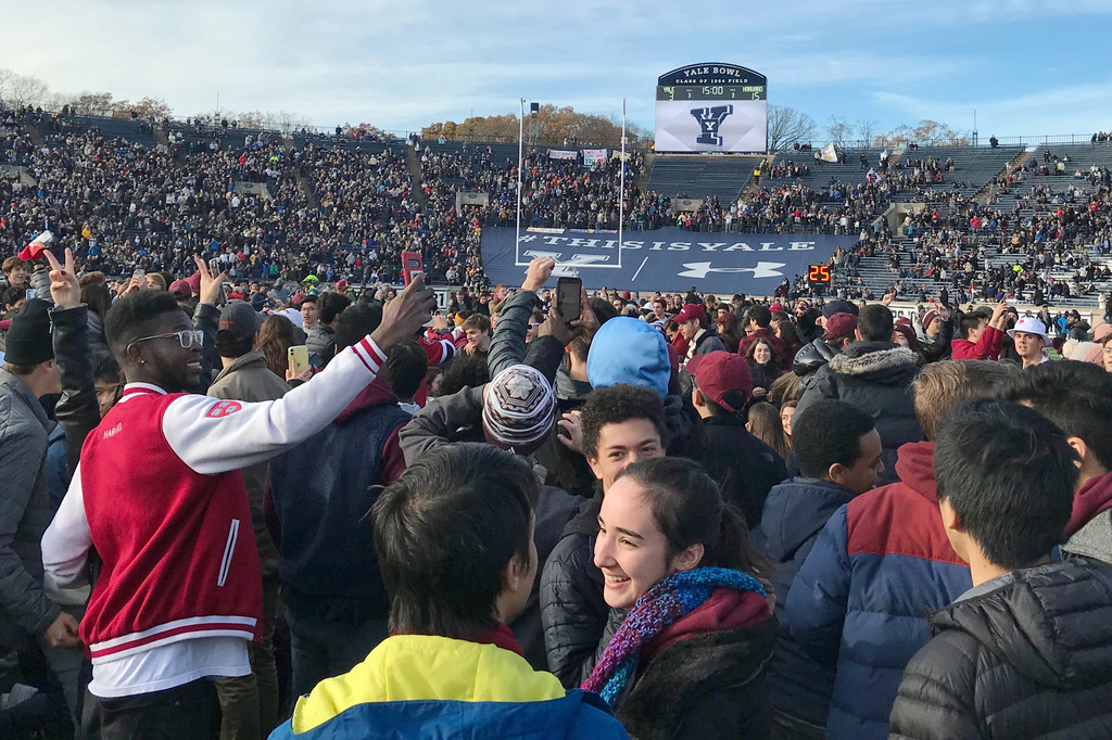 美國耶魯大學和哈佛大學23日舉行美式足球賽,中場休息時遭到環保人士衝入球場抗議,70名示威者要求大學撤資石油投資案,現場也有球迷響應,導致比賽延遲約一小時。警察到場後逮捕部份示威者,並透過廣播要求他們離場。