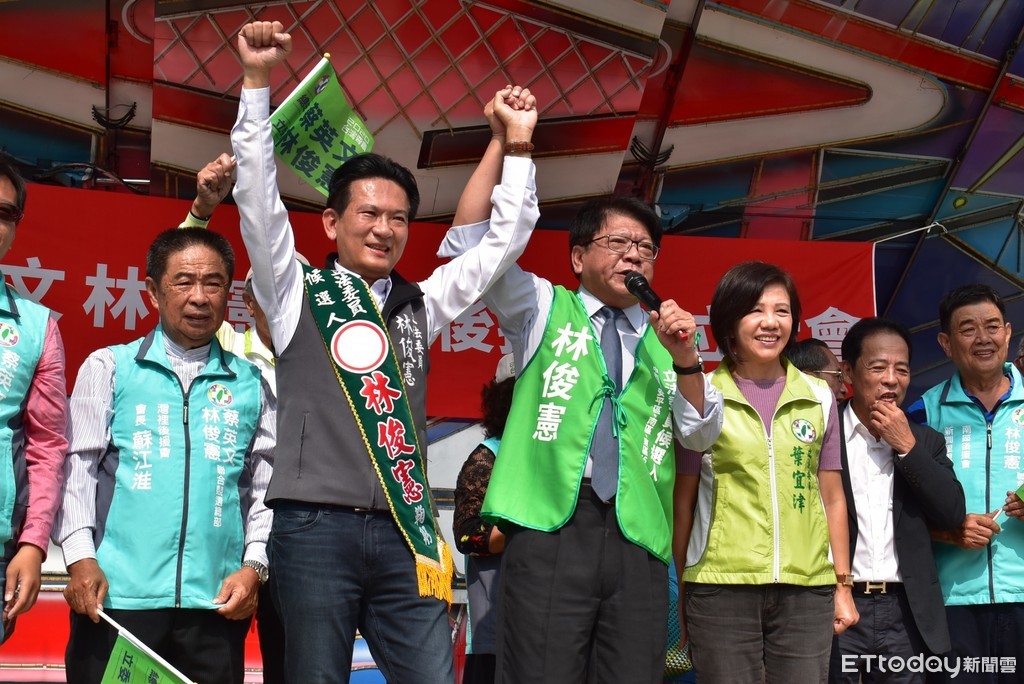 ▲民進黨立委林俊憲,南區灣裡成立「總統、立委聯合後援會」,總統府秘書長陳菊、屏東縣長潘孟安站台力挺,展現綠營團結勝選氣勢。(圖/記者林悅翻攝,下同)