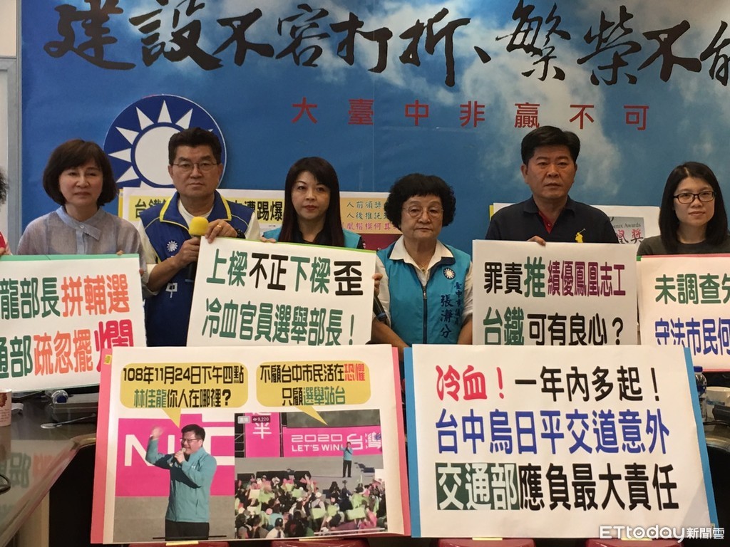 李中、黃馨慧表示,普悠瑪事件後,當時的台鐵局長周永暉請辭,後來擔任觀光局長,當時的交通部長吳宏謀請辭,後來擔任中華郵政董事長,看得出來中央「沒有懲處,只有酬庸」,不知深刻檢討,枉顧人命,林佳龍不但沒有為這次事件說過一句話,也未關心探視過傷患或家屬,只忙著幫蔡英文站台、拚選舉。