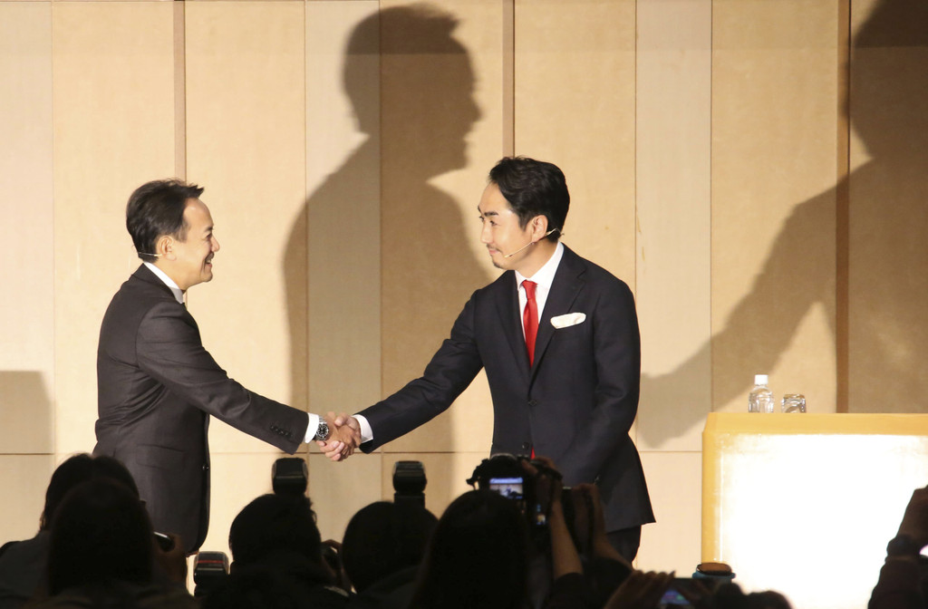 ▲ 雅虎日本公司(ZD Corp.)(ZHD)首席執行官兼總裁川部健太郎(ZD)和Line Corp.首席執行官兼總裁兼石澤武志。(圖/達志影像/美聯社)