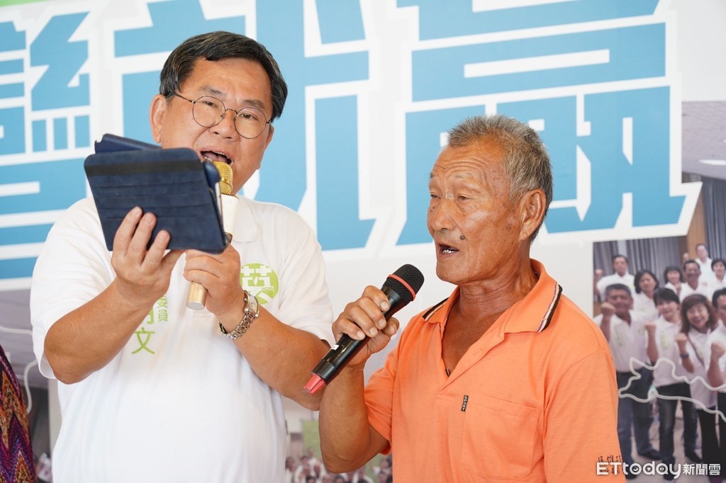 ▲立委參選人陳明文推長照關懷。(圖/記者翁伊森翻攝)