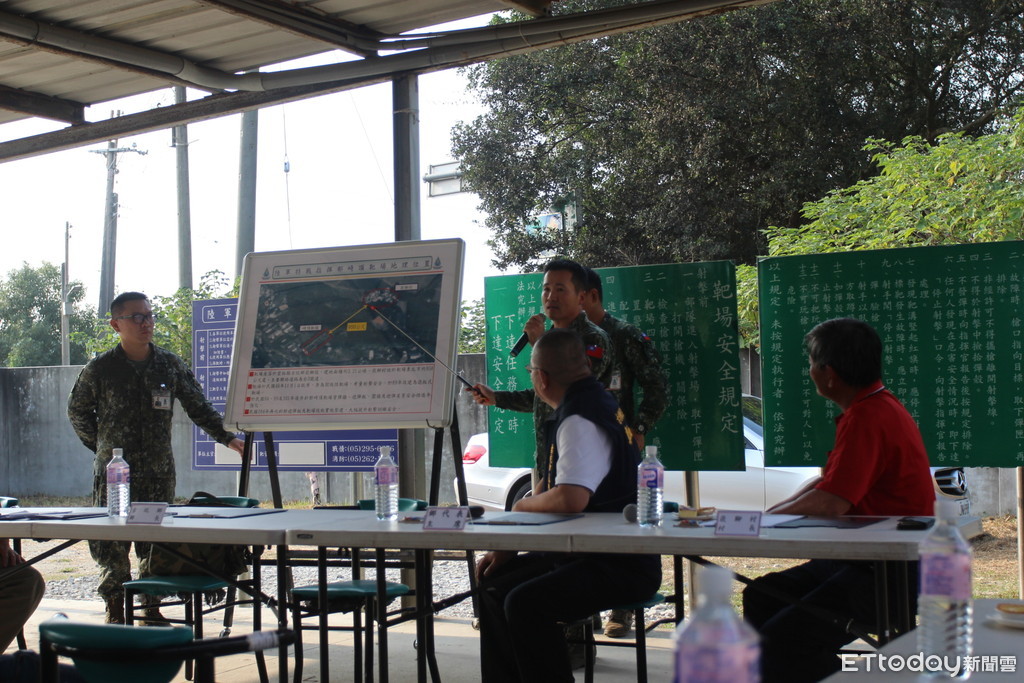 ▲負責靶場使用管理的陸軍指揮部25日下午邀請鄉代會主席鄭和義、村長吳正坤和近20名村民前往靶場座談,協調允諾加設遮彈牆以防再發生流彈事件。(圖/記者蔡佩旻翻攝)