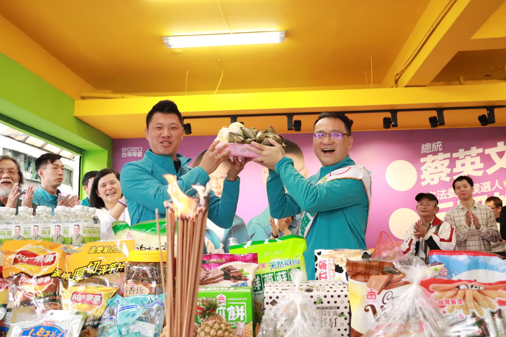 民進黨台北市(文山、南中正)立委候選人阮昭雄26日競選總部試營運,台北市議員兼競選總幹事王閔生也為阮昭雄獻上包子與粽子,期望這次選舉能「包中」,總統、立委都能旗開得勝,有趣的是,現場突然「發爐」,令選務同仁大感驚訝。