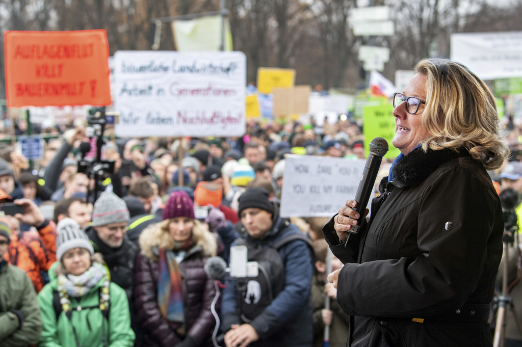 德國環境部長Svenja Schulze(SPD)在來到抗議者的面前,嘗試要解釋新的法規,希望農民能夠成為解決方案的一部分,但換來的只是一片噓聲,但她同時也警告,對於化肥導致飲用水中肥料含量過高,還有昆蟲漸漸消失在環境之中的問題,都必須要去正視。