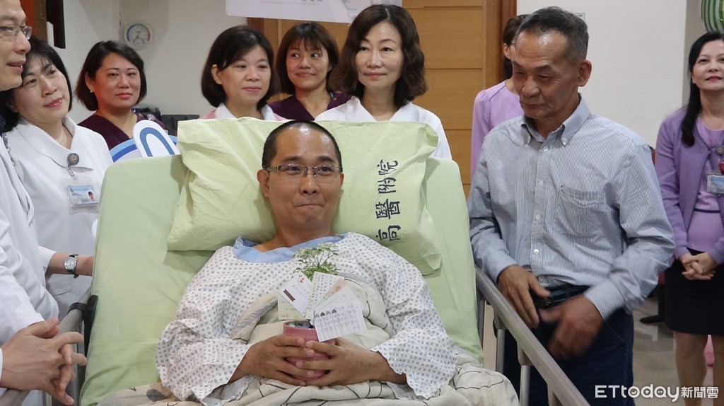▲高醫為洪先生舉辦祝福歡送會,洪爸爸在旁相當感動。(圖/記者吳奕靖攝)