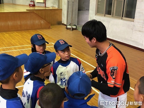 ▲▼球星桃猿投手彭聖欽及統一獅林靖凱教導小選掽傳承經驗。(圖/記者楊熾興攝)