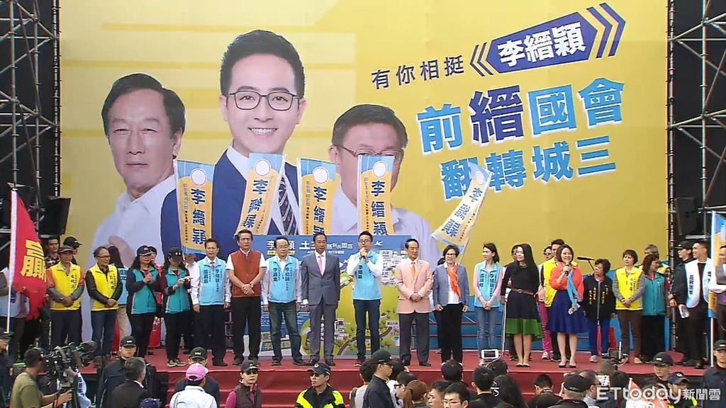 李縉穎30日於土城舉辦競選總部成立造勢大會,宋楚瑜車隊約於上午約9點40分先一步抵達會場,但並未下車。約等到9點50左右,郭台銘抵達後,兩人再一起步入會場,也由於會場為「果凍樂園」,郭、宋二人現身也掀起不小的騷動,不少民眾上前合照。