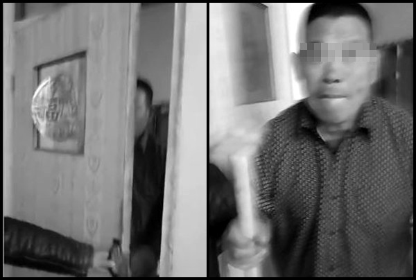 ▲爸爸拿著鐵鎚硬闖房內,想對母女施暴。(圖/翻攝自封面視頻)