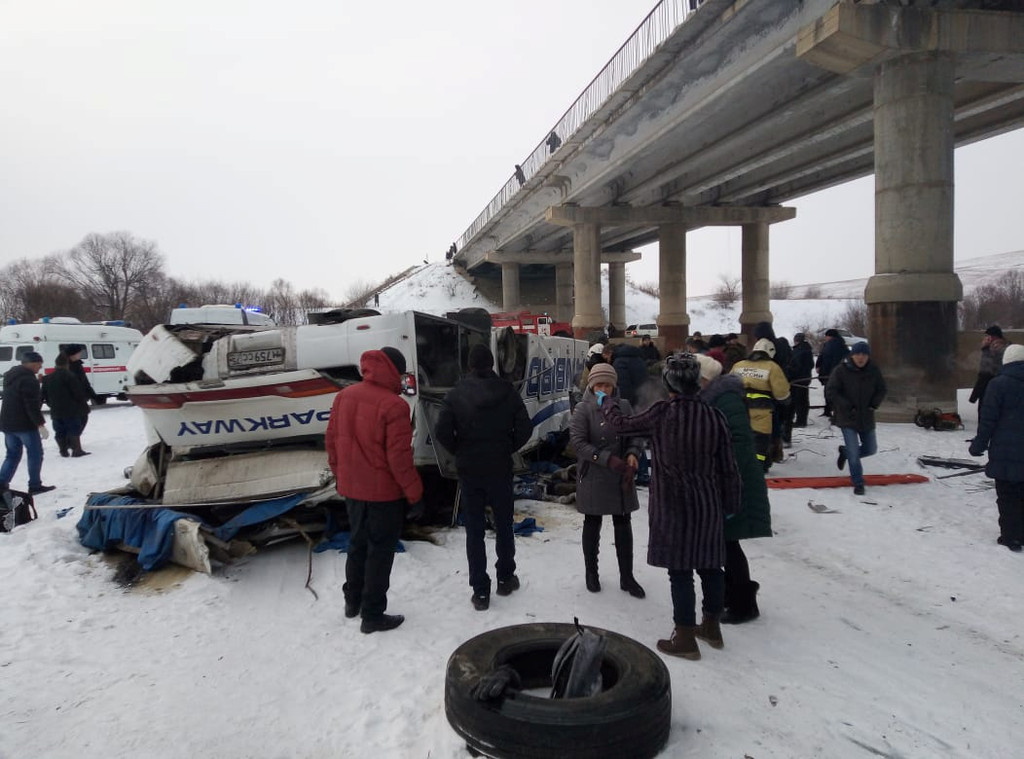 俄羅斯西伯利亞東部外貝加爾邊疆區(Zabaikalsky),一輛巴士1日在橋上發生爆胎意外,連車帶人墜破結冰河面,導致整車44人中19人死亡21人受傷。