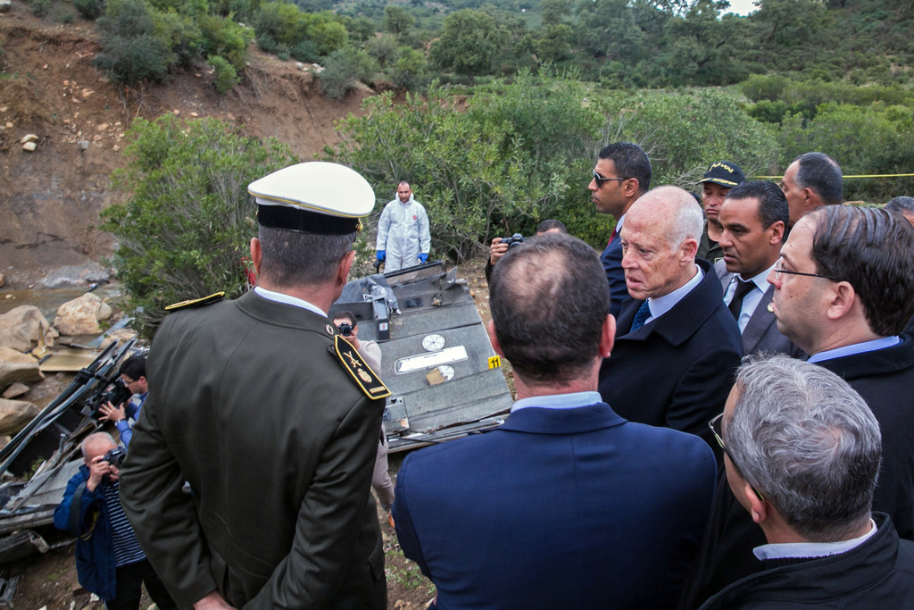 ▲突尼西亞總統賽義德(Kais Saied)到現場查看情況。(圖/路透)