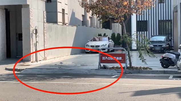 ▼房屋銷售人員說,如果車格有停車,他們會從旁邊的縫開出去。(圖/東森新聞)