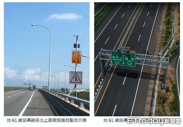 ▲台61線西濱快速道路北上通霄鎮南通灣至白沙屯北上路段設置區間測速。(圖/記者黃孟珍翻攝)