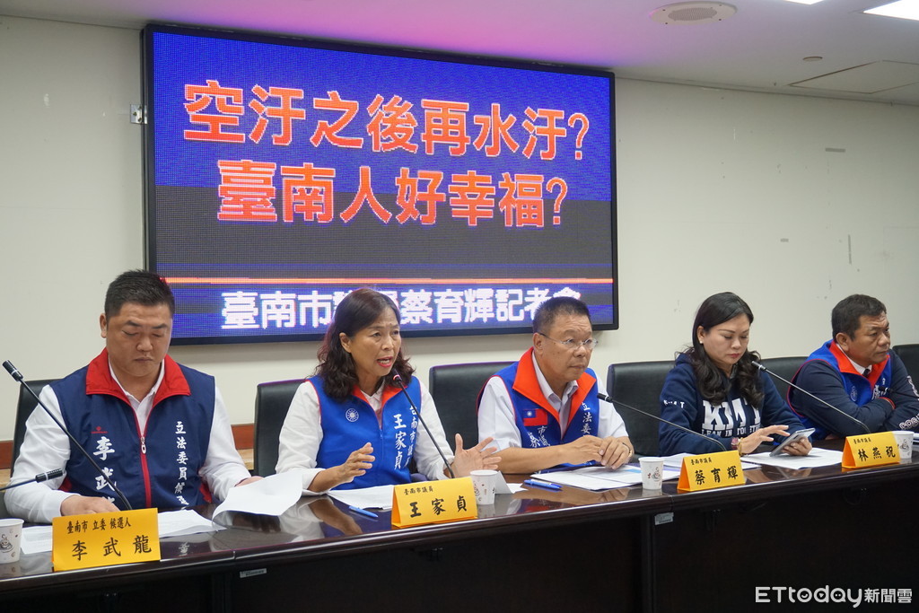 國民黨議員蔡育輝、蔡淑惠、王家貞、林燕祝、尤榮智、盧崑福、立委參選人李武龍,與台南市環保聯盟理事長黃安調舉行「空汙之後、再水汙,台南人好幸福?」記者會。蔡育輝怒批民進黨,良田種電毀了良田,現在連供應高雄、台南民生用水的烏山頭水庫也要種電,引起鄉親恐慌紛紛前來陳情,台南市這麼多地方可種電,為什麼要選烏山頭水庫,種出來的電,台電還要花數十到百倍的經費建配電輸送系統,得標的星曄綠能公司還保證水質,這不是很可笑嗎?民進黨到底圖利誰?