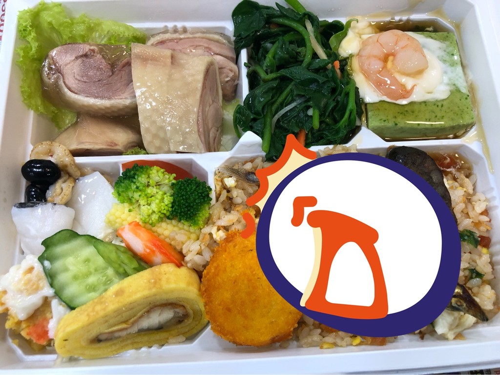 看看這個便當,可以說是裝滿各種菜色,有油雞、地瓜葉、沙拉、玉子燒、蝦仁抹茶豆腐、臘腸,有菜有魚有肉,飯的部分還不是白飯而是鮭魚炒飯,可以說是相當豐盛。原PO還在留言處透露,買便當有附小碗味噌湯,原價則是200元,「如果換白飯,少50」、「油雞超級好吃。」
