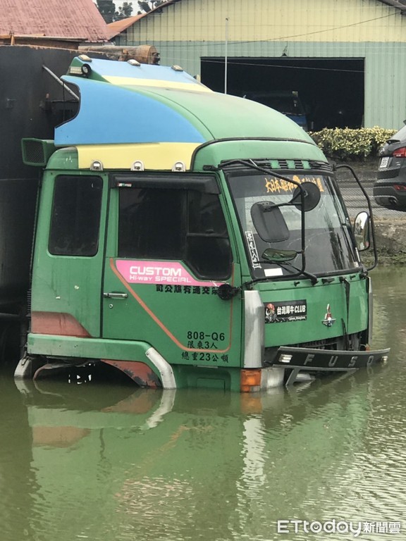 ▲林姓飼料車司機,將飼料車直接開入漁塭,避免可能發生的意外 。(圖/記者陳崑福翻攝,以下同)