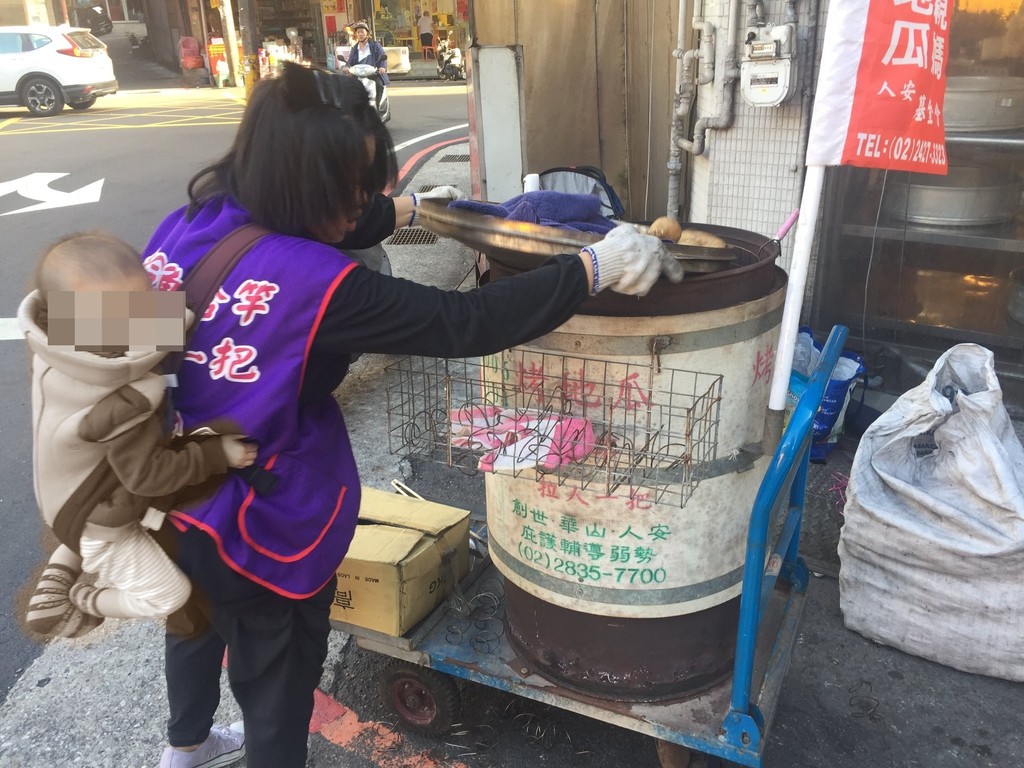 ▲單親媽背1歲兒賣烤地瓜,盼讓女兒早日回到身邊。(圖/翻攝自臉書/人安基金會-基隆平安站,下同)