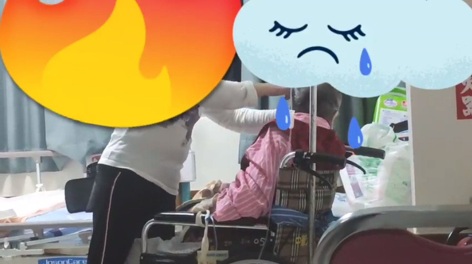 「已經三個小時了,隔壁床的阿嬤都被約束在輪椅上。」一名女網友在臉書《爆怨公社》貼出一小段影片,文中表示,外勞看護一直強迫阿嬤吃飯、喝水,老人家不要,看護就強迫餵食,結果阿嬤就噎到、揮手打人。院方只好把阿嬤綁著管束,但這一綁就是3個小時,過程中阿嬤各種請求都讓原PO快看不下去。