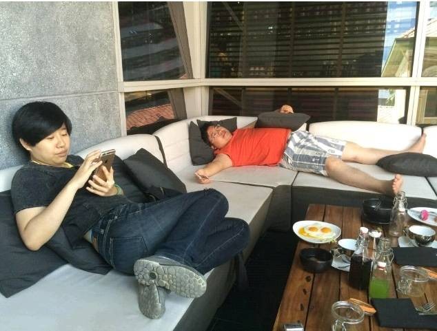 ▲▼蔡易餘、楊蕙如遭爆曾一起到泰國出遊,兩人悠閒躺在沙發上。(圖/讀者提供)