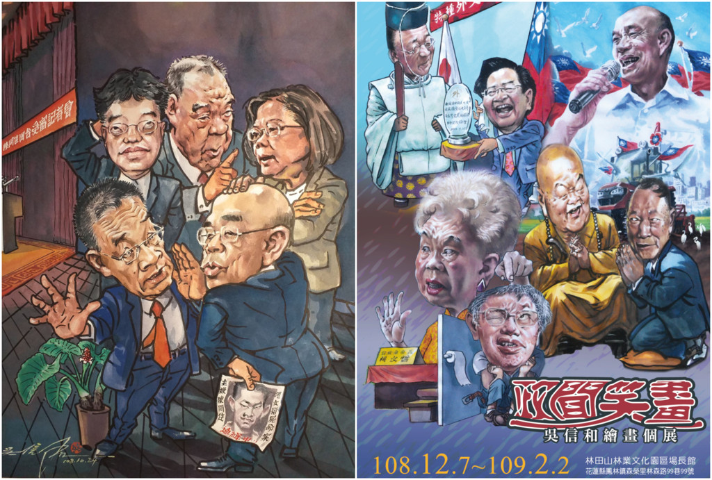 ▲蔡英文、韓國瑜、柯P都在畫裡!吳信和「政聞笑畫繪畫展」幽默打破黨派族群。(圖/吳信和創作、提供)