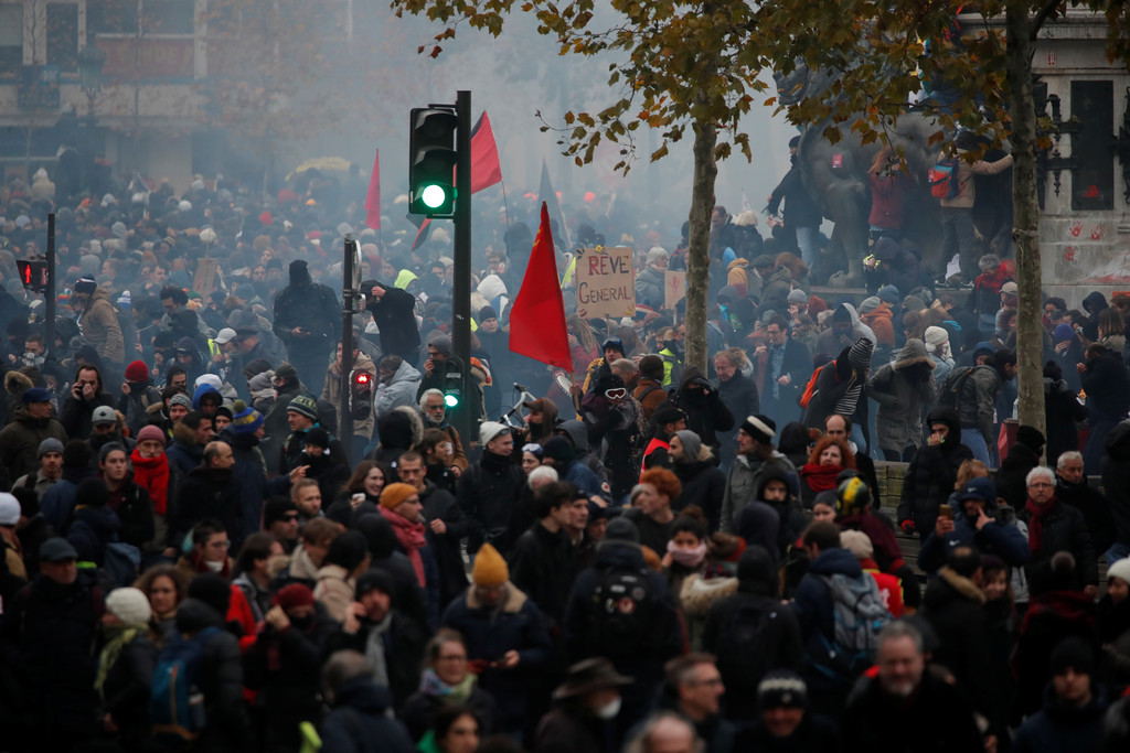 法國總統馬克宏(Emmanuel Macron)提出「統一退休金體系」的改革,被批評迫使勞工延後退休,否則只能領取大幅縮水的福利金。超過80萬人5日發起全國大罷工,國內一百多座城市都出現示威活動,90%高速列車(TGV)與火車班次被取消,數百航班停飛,許多學校宣布停課。
