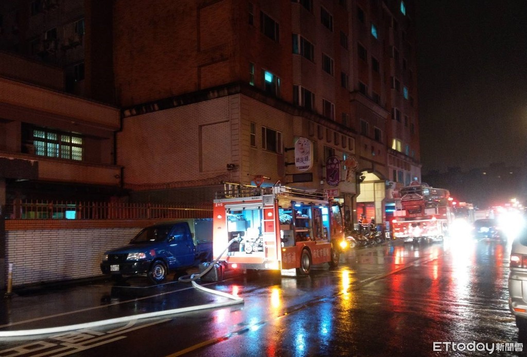 ▲桃園市蘆竹區南昌路一棟大樓6日凌晨在5樓冒出濃煙,桃園市消防局緊急派員灌救與疏散住戶,30分鐘內撲滅火勢幸無人傷亡。(圖/記者沈繼昌翻攝)