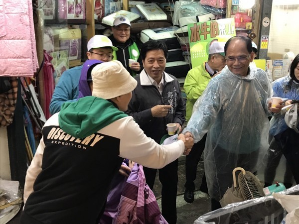 ▲游錫堃陪同鄭寶清市場拜票。(圖/鄭寶清競選總部提供)