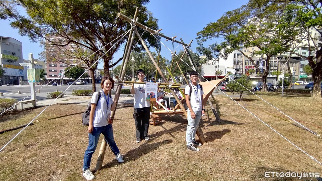 ▲中山大學師生於高雄鹽埕區馬雅各公園打造的「海盜船」,由竹子搭建成較大型的鞦韆,藉由左右擺動讓孩童覺得刺激有趣。(圖/中山大學提供)