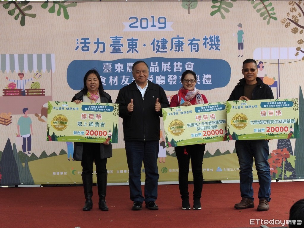為鼓勵餐廳業者能使用在地有機或友善耕作的食材,符合綠色飲食、永續經營指標,台東縣政府舉辦「台東食材友善餐廳」徵選活動,結果有七里坡紅藜養生料理餐廳、聖母健康農莊、及池上鄉農會3家餐廳獲選最高榮譽「標章獎」。