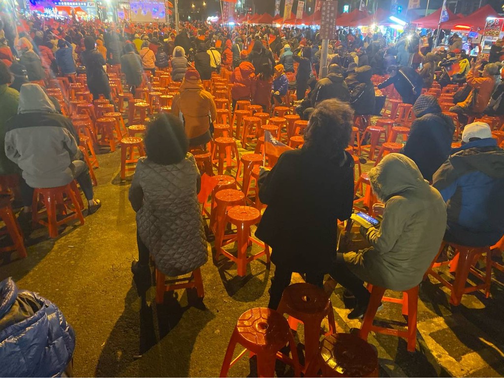 四叉貓說,然而在韓國瑜大進場後,椅子並沒有全部被坐滿,所以他估計該場造勢人數約4000人,不過「台上說現場2萬人…」