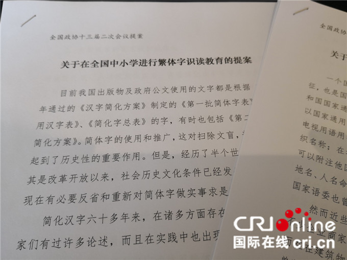 ▲政協委員提「繁體字識讀」提案。(圖/翻攝國際在線,下同。)