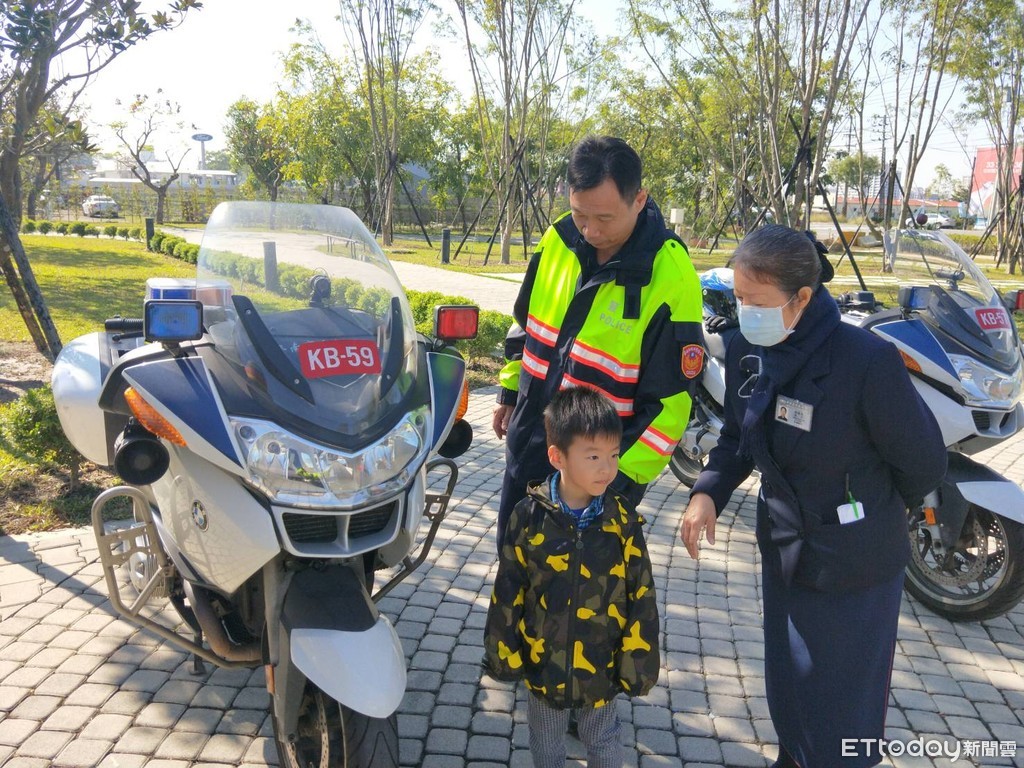 ▲台南市交通警察大隊,現場展示大型警用重型機車及可愛的警察寶寶充氣娃娃供民眾拍照留念,民眾搶著合拍,熱鬧滾滾。(圖/記者林悅翻攝,下同)