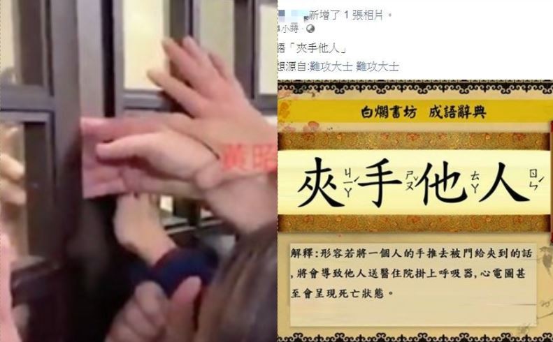 對此,就有網友看了影片後,在臉書發文表示,「我想勸黃昭順立委,凡事不要夾手他人」而之後又有網友將「夾手他人」特別拉出來創了一個成語,又特意為此下了註解,「形容若將一個人的手推去被門給夾到的話,將會導致他人送醫住院掛上呼吸器,心電圖甚至會呈現死亡狀態。」對此,網友們看到後也都笑翻了,紛紛留言表示,「噴午餐了啦」、「有夠靠北」、「手夾情緣」。