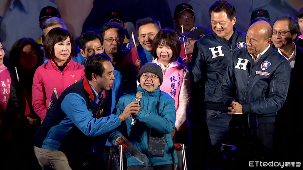 國民黨總統候選人韓國瑜8日結束新北輔選行程後,隨即前往桃園,與桃園6位立委候選人合體造勢,活動現場一名多重障礙、腦性麻痺患者表示,他曾經聽過「台灣最美的風景是人」,但自己因力挺韓國瑜和陳學聖卻遭到霸凌。