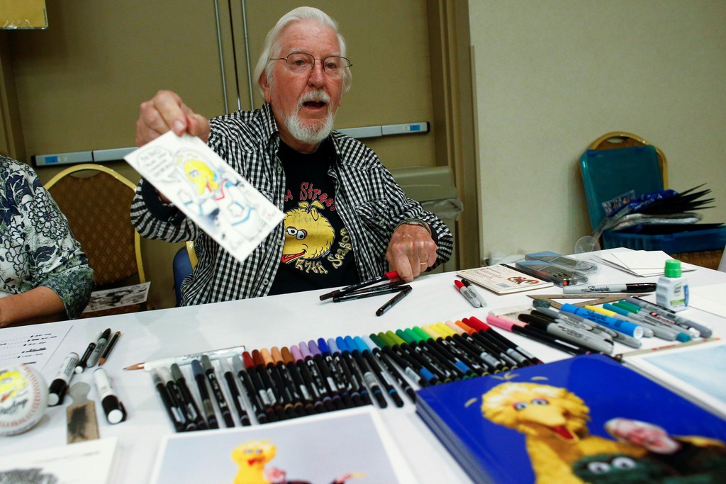 ▲斯皮尼(Caroll Spinney)2014年6月28日在紐約市,一場活動中為粉絲簽名。(圖/路透)