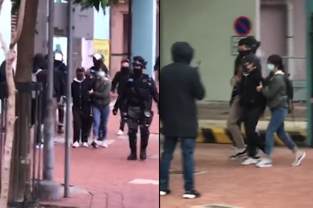 ▲女子今早在尚德村被港警逮捕。(圖/翻攝自臉書「理大校園電台」)
