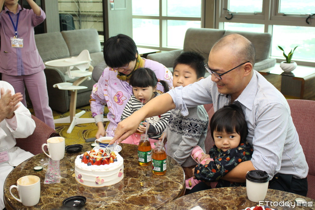 ▲義大產後護理之家慶賀首位多寶媽「五年生五個」。(圖/記者許宥孺翻攝)