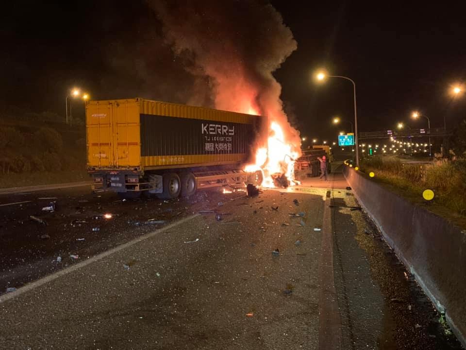 ►快訊/國一北上龜山段「聯結撞拖板」火燒車 2歲童、1女慘成焦屍