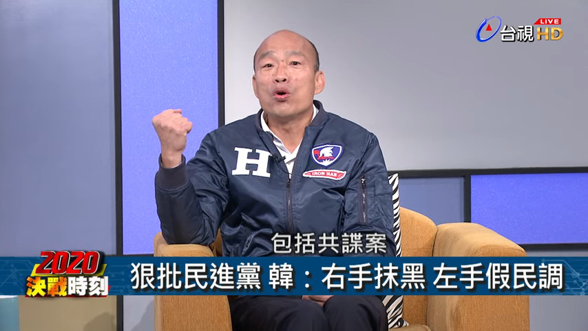 面對民進黨的選戰策略,韓國瑜也公開喊話,「對不起,今天對手是韓國瑜,我不跟你來這一套,我先砍斷你一隻手,然後你就繼續抹黑吧。」