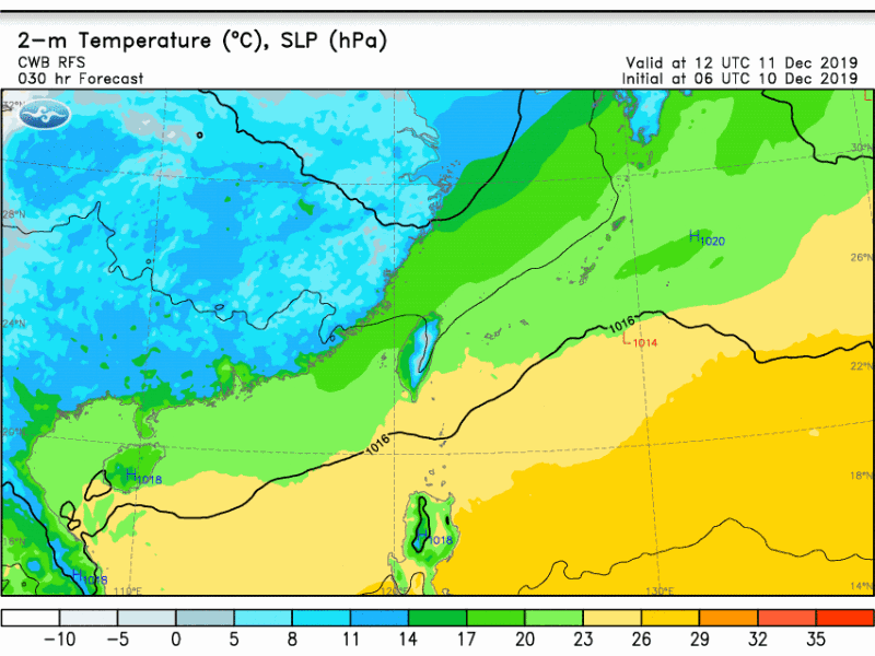 氣象局預報,東北季風增強,北部、東北部地區11日降雨機率提高,並轉有局部短暫雨,天氣會稍轉涼,高溫約21至24度,下降4度左右,花、東也有局部短暫雨,中南部受影響較小,仍維持多雲到晴。各地低溫約14至18度間,中南部早晚涼,日夜溫差較大,可達10度。