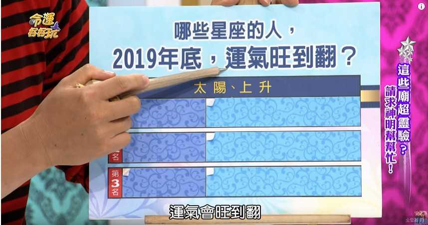 剩下不到1個月就要迎接2020年的到來,人人都想知道自己的運勢如何,好為來年做準備。星座專家艾菲爾在《命運好好玩》節目中列出2019年底,12星座運勢最旺的前3名,趕快好好把握黃金翻身期!