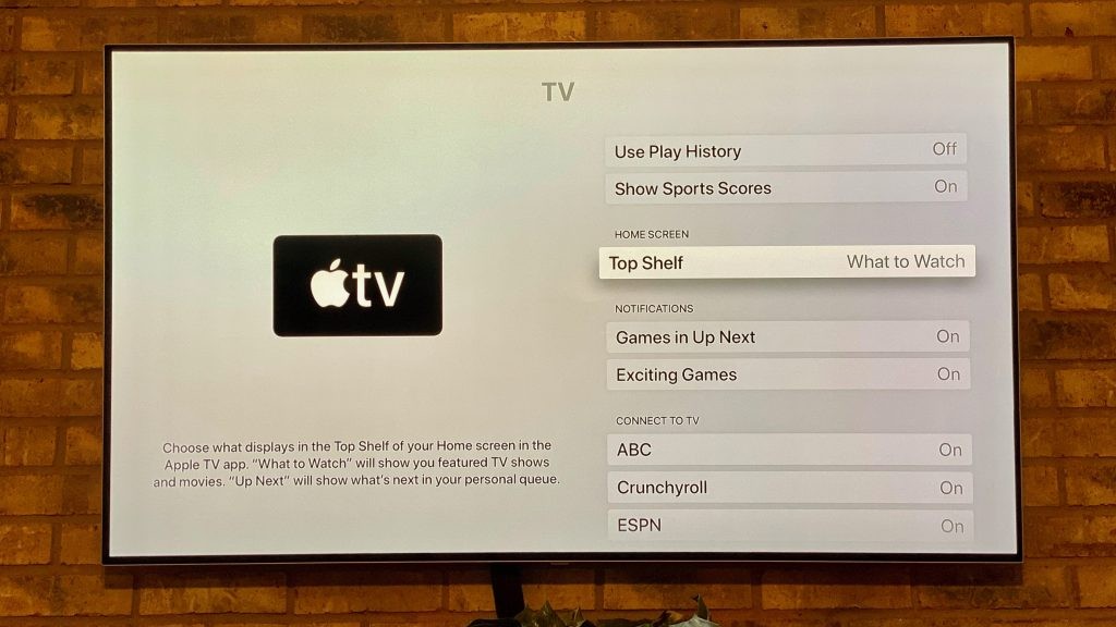 蘋果重新設計了tvOS 13版本的Apple TV主畫面,同時,它還更改了Apple TV App首頁的內容。該區域原本是顯示了個性化的「下一個」(Up Next)內容,但現在已更改為「要觀看的內容」選擇區的影片預告和預覽。