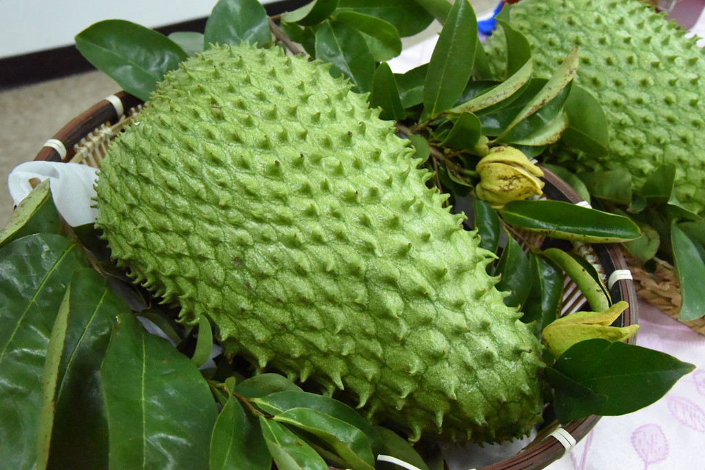 台東農改場表示,為促進產業發展,3年前由栽培技術及多元利用兩方面著手,以人工授粉、產期調節等關鍵技術結合開發加工產品,其中,人工授粉技術,可將刺番荔枝的著果率由30%提升至80%以上,平均單果更重達3公斤以上,而本技術生產的刺番荔枝果實大而圓整。