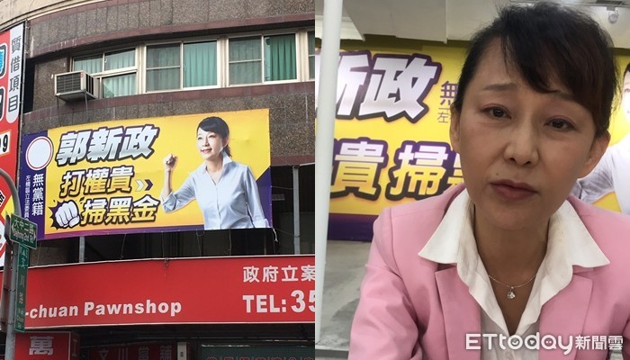 選戰打到現在,曾因為看板被下架上新聞版面,郭新政向《ETtoday新聞雲》記者提到「凡是掛我旗子、招牌或是貼上海報的,只要是做生意的幾乎都會受到威脅霸凌,台灣民主走到今天這是非常不好示範」她指出不少支持者的店家,時常遭到相關單位關切,甚至直接下公文拆除招牌,理由是「污染環境」。