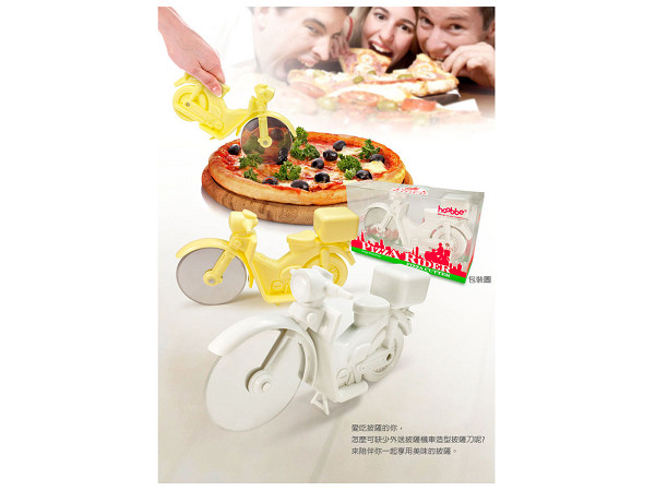 打頭陣的是廚房餐具類,不瞞大家說,童話小編一看到這項商品先是哈哈大笑,因為我們壓根兒也沒想到這台模型腳踏車,居然有個這麼鋒利的輪胎!喜歡自己在家烤披薩嗎?如果還在用菜刀一片一片切就太落伍了,剛出爐的披薩烤餅都交給腳踏車披薩刀吧。派對上拿出這把刀一定超吸睛!