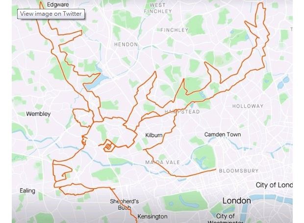 現在有些人在跑步、騎車或爬山時,都會利用GPS記錄自己移動的路徑和里程數。英國一名業餘自行車手,平常會使用健身App來記錄運動過程,某天他突發奇想利用App在地圖上「作畫」,想不到成品一舉在網路上爆紅。