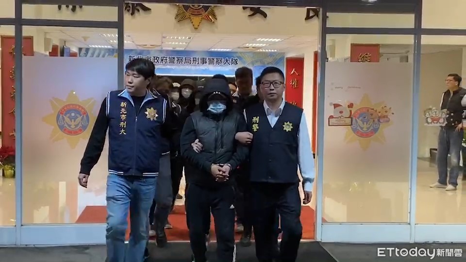 ▼警方持拘票將淡水「龍炮幫」主嫌等人帶回。(圖/記者陳豐德翻攝)