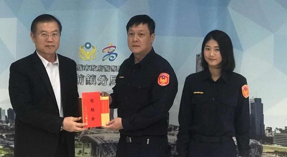 高雄前鎮分局4名員警於昨(12)日深夜執行臨檢勤務時,獲報路上有「押人討債」車輛,警方10分鐘內圍捕成功,將嫌犯逮捕到案。高雄市警察局長李永癸為鼓勵同仁認真負責工作的精神態度,13日前往前鎮分局頒發獎金和破案茶,其中更特別提到剛從警的翁姓女警破案當下膽識過人。
