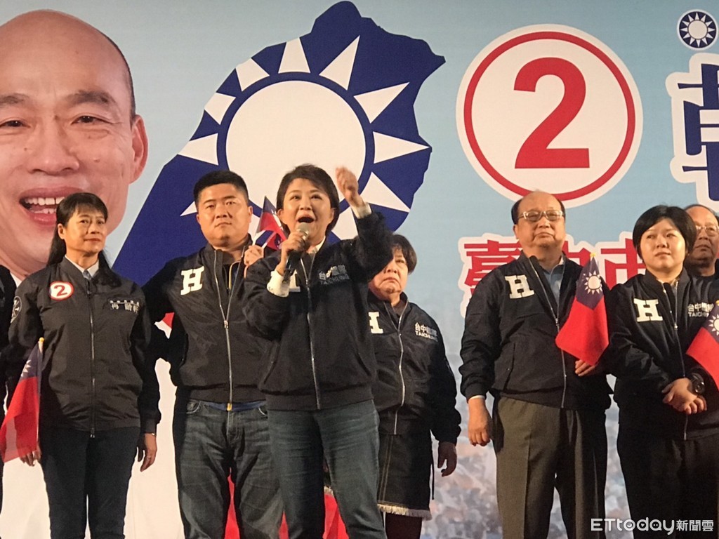 國民黨提名總統參選人韓國瑜台中市競選總部13日晚間6點,在烏日區台中國際展覽館舉行成立大會。總部主委台中市長盧秀燕、榮譽主委也是紅黑派大老陳庚金、廖了以、黃仲生,顧問團總團長顏清標以及前台中市長林柏榕、胡志強、立委顏寬恒、江啟臣、及各選區立委參選人都到場。