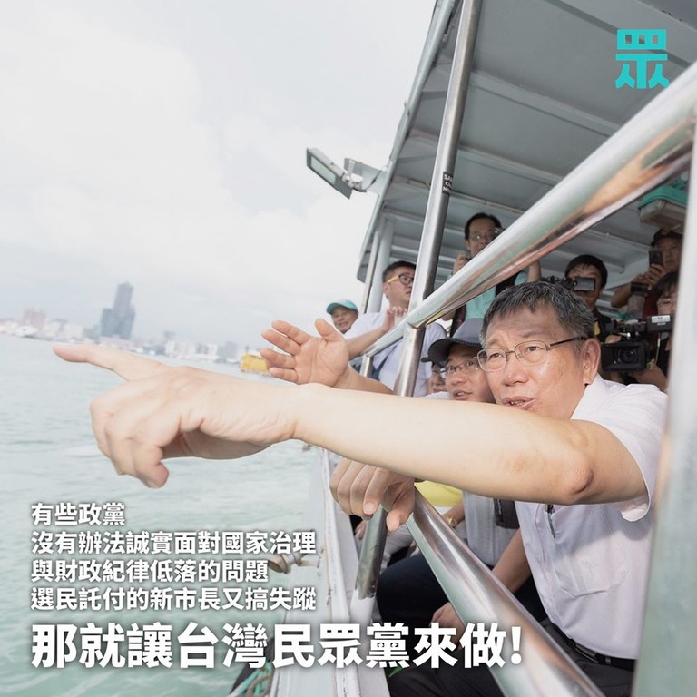 柯文哲強調,有政黨最近開始把高雄選舉結果的原因歸咎在他身上,去年發生的「韓流」,也許有「白綠分手」的效應,但施政失敗才是造成版塊移動的關鍵。「既然有些政黨沒有辦法誠實面對國家治理、財政紀律低落的問題,選民託付的新市長又搞失蹤,那就讓台灣民眾黨來做。讓高雄重開機,台灣重開機!」