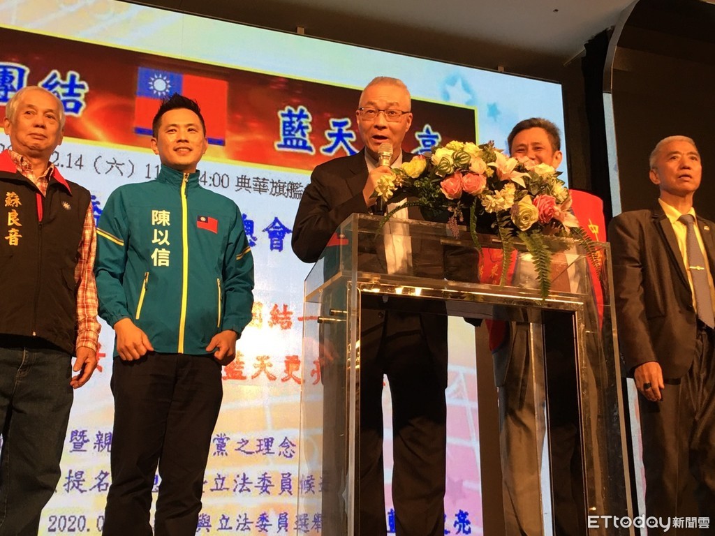國民黨主席吳敦義14日受邀參加「歸僑聯誼會 僑親後援總會成立大會」,致詞時感謝大家讓國民黨2018年締造四十幾年來最好的成績,希望2020年,能做一件對中華民國最有意義的事,也就是總統票投給韓國瑜、政黨票投國民黨,力拚立法院衝60席,才能「下架空心蔡,上架中華民國派」。